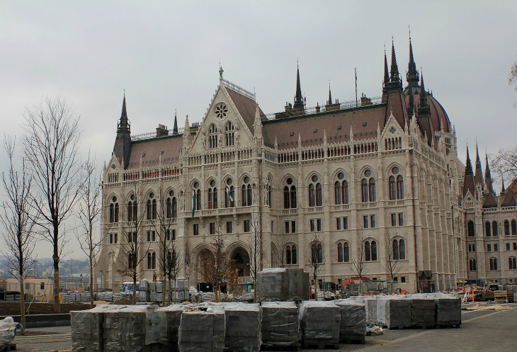 Здание Парламента в Будапеште является одним из самых масштабных в мире – его строительство продолжалось 17 лет. И продолжается до сих пор, как мы убедились – вся территории обнесена забором и ведутся строительные работы: