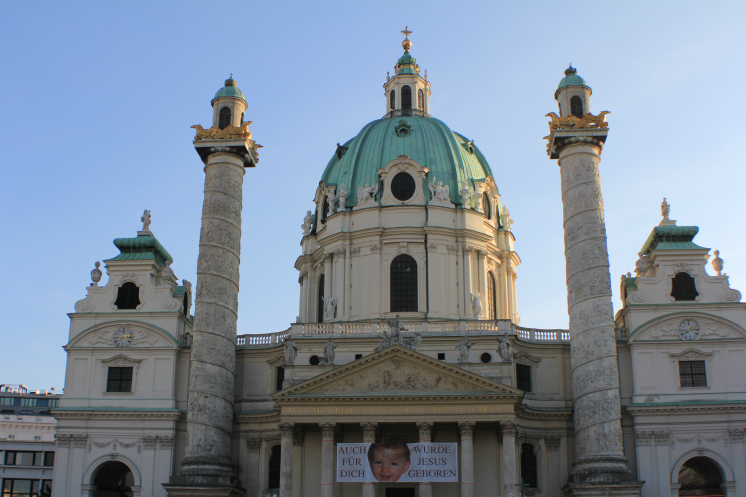 Церковь Карлскирхе (Собор Святого Карла) – одно из самых прекрасных барочных зданий в Европе. Хотя, изначально, австрийцы были против строительства церкви, и называли ее «слоном, расположившимся посреди площади». Она и впрямь кажется очень массивной и громоздкой по сравнению с Вотивкирхе, например, или с собором Святого Стефана – более изящными.
