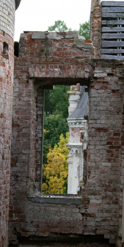 Мы были там осенью, все было похоже на замок Спящей красавицы, в лесу видны лишь крыши замка и запустение… Дом глядит пустыми глазницами , через них просвечивает золотой лес, все щемит внутри- единственная мысль «а как здесь было раньше, неужели ничего не сохранится?»