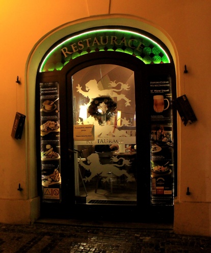 Но, как говорится, любовь любовью, а кушать хочется всегда)) Недалеко от Староместской площади расположен ресторан «У трех золотых львов». Очень уютный и по-чешски колоритный, он привлек нас еще дома, по отзывам туристов в интернете. В ресторане два зала: основной на первом этаже, и зал для курящих этажом ниже. Там же, в отдельной комнатке, стоят резервуары с пивом: