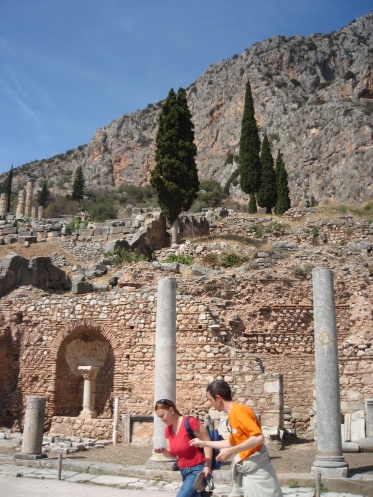 Ночевали в гостинице в поселке Каламбаки, на ужин, кажется, тоже была мелко порезанная капуста:) На следующий день поехали в Дельфы. Честно скажу, что сама вряд ли бы туда поехала, но всем мало-мальски интересующимся античностью его очень рекомендую! Там находится, наверное, лучший музей изобразительного искусства Древней Греции. Кроме того, само место потрясающее: высоко в горах, среди хвойных деревьев, там удивительно чистый и целебный воздух. Развалины сооружений Дельфийского оракула на меня по сравнению с музеем и природой особого впечатления не произвели.