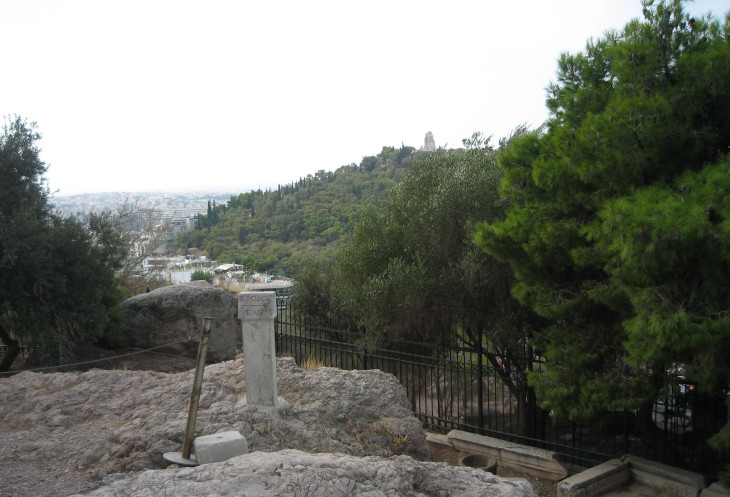 При входе на вершину Акрополя было не протолкнуться. На фотографиях это нетрудно заметить Не ожидала, что мне понравится на Акрополе. По картинкам и документальных фильмам складывалось впечатление, что Акрополь – это большой пологий холм, на котором стоят развалины Парфенона. К моему большому удивлению, оказалось, что это целая гора высотой 156 м, заросшая разными хвойными деревьями и кустарниками, на которой, кроме античных храмов, находится много других древних сооружений, в том числе Одеон Герода Аттического, Асклепион, Театр Диониса. На Акрополе с нами произошел казус, к сожалению, типичный для групповых экскурсионных поездок. После экскурсии нам разрешили полчаса погулять по холму, а в определенное время надо было вернуться вниз к автобусу. Время мы с Таней вроде запомнили, но по-разному. Поскольку голова болела у меня, я решила полагаться на ее версию, но зря, как выяснилось К автобусу опоздали минут на 20 или 30 Когда мы туда зашли и увидели сидящую в мрачном молчании группу в полном составе с экскурсоводом и водителем, то решили, что наверное нас убьют! Но до этого, к счастью, не дошло. Может быть, потому что раньше мы дисциплину в поездке не нарушали, и было понятно, что это случилось случайно. Мы, конечно, долго извинялись. (А вот если бы мы сами по себе гуляли по Акрополю, то не смотрели бы через каждые 5 минут на часы и бежали бы потом изо всех сил вниз к автобусу, чтобы выяснить, что случайно время перепутали и прибежали позже всех… но, как говорится, если бы да кабы…)