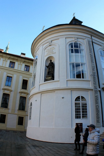 Пройдя через проход восточного крыла, оказываемся в третьем дворе Пражского града. Именно в этом дворе находятся старейшие части замкового комплекса.