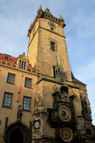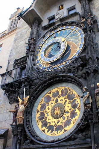 Часы Орлой являются не просто деталью ратуши, они представляют собой целый комплекс скульптурных элементов, очень органически сливающихся с архитектурой здания. Каждый раз во время боя часов разворачивается настоящее представление: фигура Смерти в виде скелета в нижнем окошке ударяет в колокол, отбивая время, дверцы над циферблатом открываются и из одного из них медленно выходят фигурки двенадцати святых апостолов, которые двигаются к другому, описывая полукруг. За фигурками следует сам Христос. Каменные апостолы не просто проходят мимо, они поворачивают голову к наблюдающим за ними людям и снова скрываются за дверцей. Фигура Смерти переворачивает песочные часы и кивает фигуре турка, в ответ тот отрицательно качает головой. В это же время фигурка человека, символизирующая скупость, встряхивает кошелек, а изображающая транжиру — смотрится в зеркало. Вот на это мы и смотрели, разинув рты, не представляя, каким же волшебством сие действие было для жителей в средние века…
