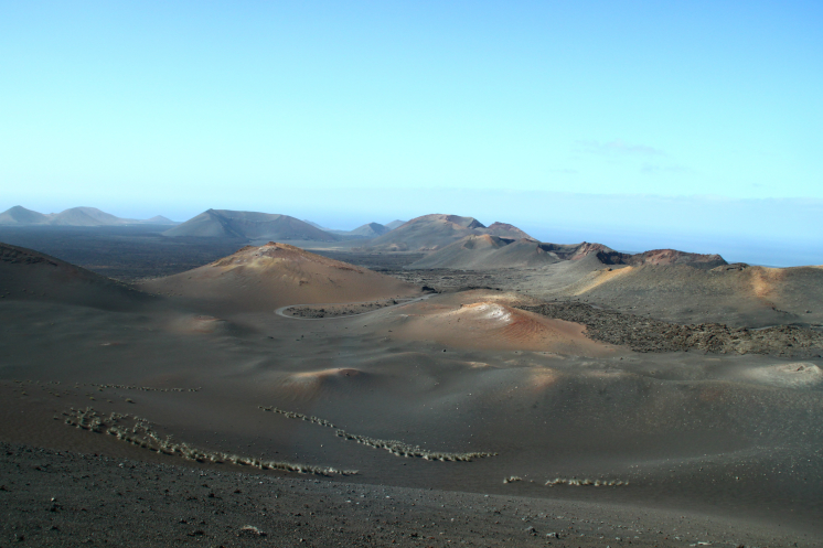 После La Santa мы отправились в Национальный парк Тиманфайя. На территории парка находится более 25 вулканов. Местный ландшафт был сформирован за счет двух извержений 1730-1736 годов и 1824.