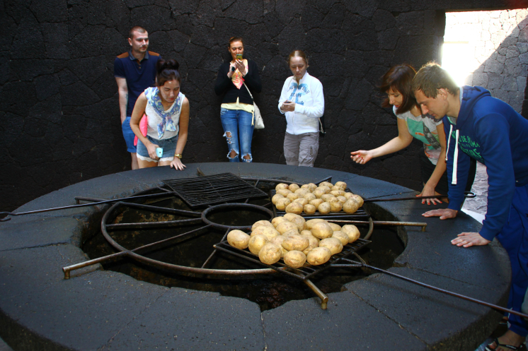 В парке есть ресторан Диабло, мы, конечно, не могли тут не перекусить, вообще ели на острове как слоны. Еда здесь готовится на естественном тепле недр Земли, Вы буквально можете наблюдать за процессом приготовления, правда у этой «плиты» очень жарко. «Вулканический гриль» спроектировал Сезар Манрике, собственно он же придумал символ парка – чертика.