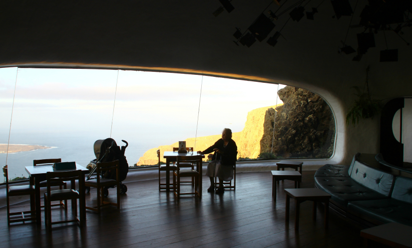 Так вот, после сытного обеда с местным вином, мы отправились на север острова на смотровую площадку Mirador del Rio. Создателем этого уникального места, которое гармонично сливается с окружающей природой, является Сезар Манрике, что, я думаю, уже ни для кого не является удивительным фактом. Здание смотровой площадки, а по совместительству и кафе встроено в скалу, со стороны острова постройка скрыта каменными насыпями, поэтому сложно догадаться какой прекрасный вид открывается оттуда. А вид, и правда – великолепен!