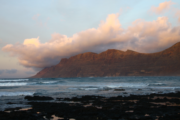 Прекрасная набережная протянулась вдоль берега, отсюда виднеется соседний остров Фуэртевентура, закат был красивый и долгоиграющий.