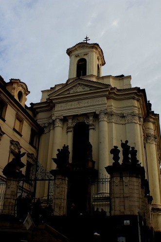 Полюбоваться на костел Святого Игнатия в центре Карловой площади, фасад которого украшает скульптура святого покровителя, окруженная золотым ореолом.