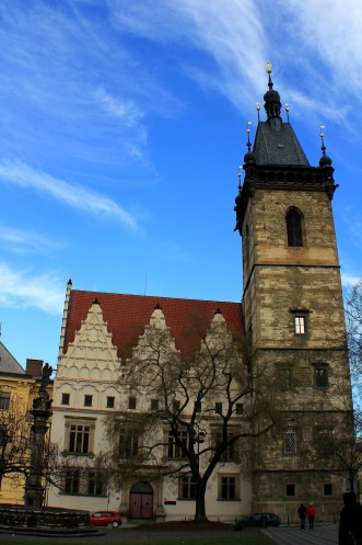 Увидеть Новоместскую ратушу – основную и самую значимую достопримечательность площади, с очень оригинальными элементами: двускатной высокой крышей, венчающей трехэтажное здание с торцевым высоким фонтаном.