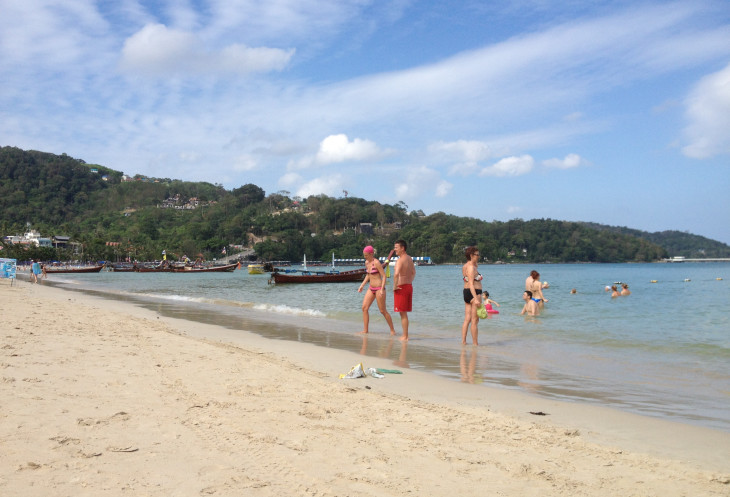 В первый же день бросили вещи в номерах, и пошли осваивать территорию. Дружной компанией позавтракали в кафе, попали под ливень – 3минутный), естественно, пляж посетили и искупались(с того первого взгляда и на 20 дней  наша южная часть Патонга стала почти родной, ни на какие красоты и скрипучие пески Карона или Каты мы его не променяли).