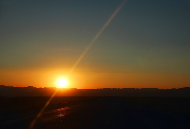 Здесь лично я посидел бы часок другой, созерцая красоту, но времени на это уже нет. Выезжаем на прямую трассу, ловим последний луч солнца - кто в глаза, кто в видоискатель