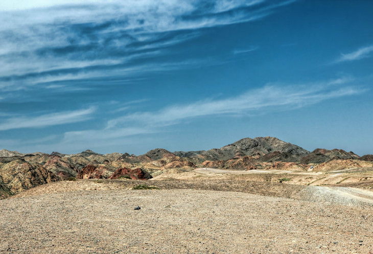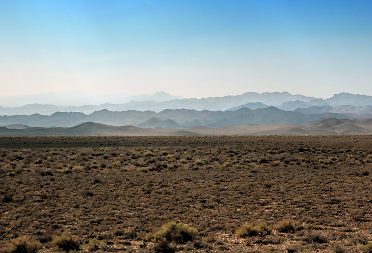 Тени в каньоне все длиннее, и наш водитель начинает намекать, что пора возвращаться, пока окончательно не стемнело. Полные впечатлений, отправляемся в обратный путь. После переезда моста через Чарын, с горки, открывается вид, который я бы назвал неземным