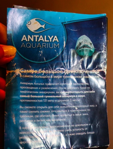 Но я же культурная: зачем человека задерживать: пробегаем всё быстро. Точнее, проходим, но ещё чуть-чуть скорости – и получилось бы, что пробегаем… На выходе Ильхан дарит мне брелок-открывашку для пива с надписью «Анталия. Аквариум», а в процессе хождения периодически норовит сложить лапы мне на плечо (от чего я тактично увиливаю).