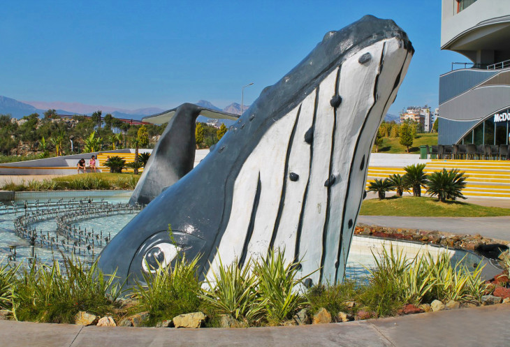 Я рассказываю, что была в аквапарке (он напротив) в прошлом году. Ильхан спрашивает меня про аквариум. Ответ отрицательный: нет, не была. А хочу ли? Ну… Если хочет он – я пойду. Тем более, что настроение супер, а возле аквариума ну ОЧЕНЬ красиво: большой кит, вот такие «грибы» - прям конфетка!