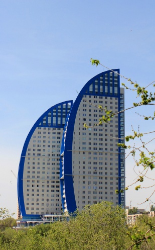15. Жилищный комплекс «Волжские паруса» на набережной - новая визитная карточка Волгограда. Он представляет собой два высотных здания в 32 и 28 этажей, фасадные поверхности корпусов слегка изогнуты и напоминают наполненные ветром паруса.