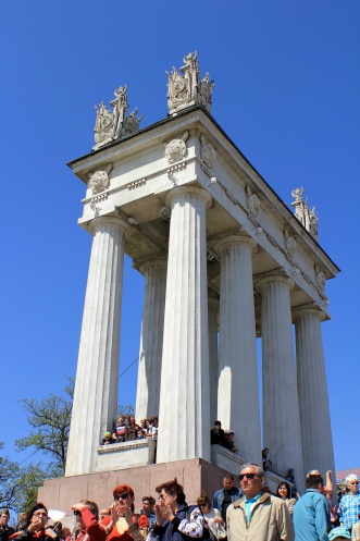 Поэтому 9 мая рано утром оправились на курган, к подножию скульптуры «Родина-мать зовет!»; положили цветы, на несколько минут задержались послушать песни Высоцкого о войне, полюбоваться с «высоты 102» на город и Волгу…