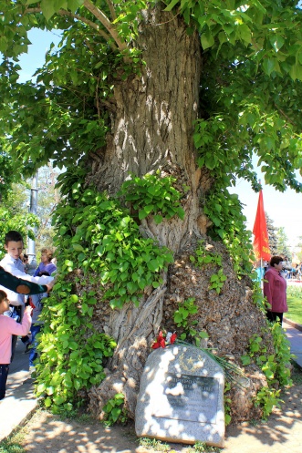 7. В огне войны выжил многолетний тополь, сплошь укрытый ранами от снарядов – в 1957 году он приобрел статус природно-исторического памятника.