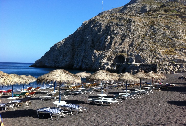 Знаменитые пляжи с разноцветным песком – это тоже своего рода визитная карточка Санторини. Песком, конечно, его можно назвать условно. Если говорить о черном, то это, скорее, галька. Нагревается от солнца она гораздо больше, чем привычный для нас белый песок, но пользы для ног приносит тоже немало.
