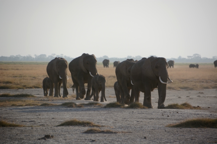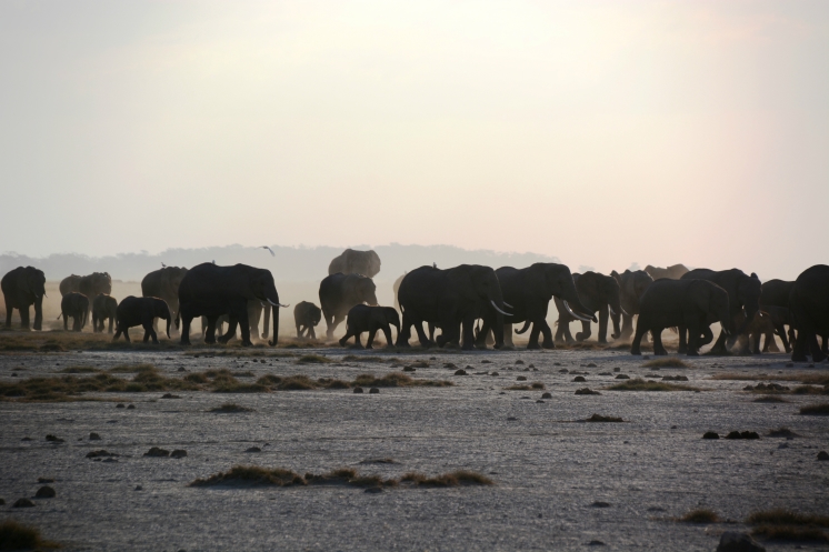 Амбосели – лучшее место в Кении для наблюдения за слонами. Их стада превышают здесь сотню голов.