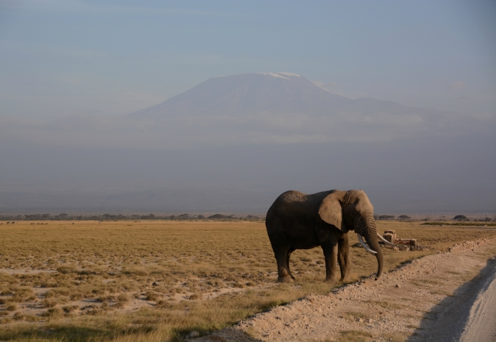 Перед нами белела совершенно пустая дорога, а над ней полностью открылась Килиманджаро. Облака разошлись, мы видели снег на вершине и складки от лавы на склонах. Я сделала много кадров, но на обратной дороге всё равно не могла оторваться – смотрела и смотрела на потрясающую гору, которая так долго от меня ускользала. Перед самыми сумерками к подножию Килиманджаро вышел жираф, и мы помахали ему рукой: «Пока, Амбосели! Уже начинаем скучать!»