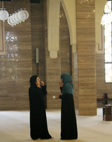 Нас попросили подождать...Да, я знала, что в мечети, даже если приходишь один, обязательно дают бесплатного экскурсовода. И действительно, ровно через пять минут прибежала наша девушка, кстати, волонтер (их работает в мечети очень много), мы разулись, я вручила мужу камеру, потому что слушать (по-английски) и одновременно фотографировать, было бы невежливо