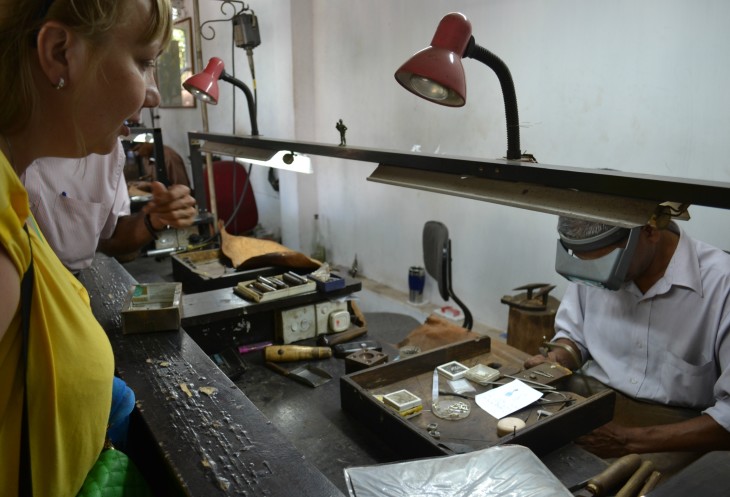 На выходе из парка мы увидели улыбающегося Инди и решили проехать до ювелирной фабрики. Очень много посмотрели изделий, я остановилась на комплекте из серебра и с россыпью из полудрагоценных камней. Это был подарок моих друзей на ДР.