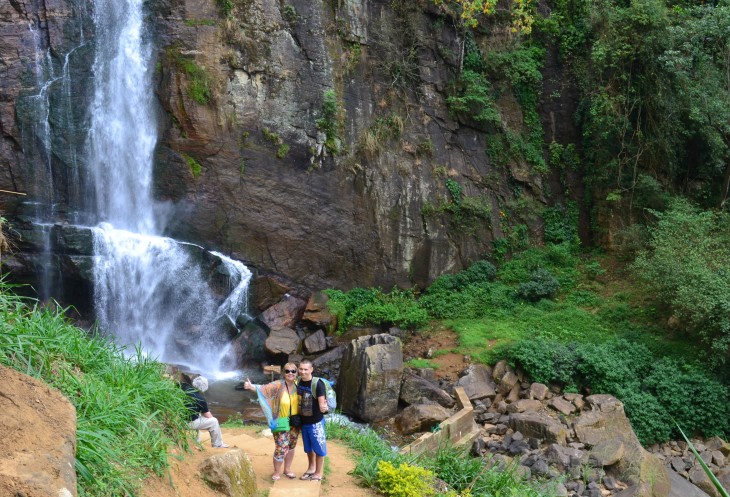 На Шри Ланке более ста водопадов, и самые красивые из них располежены в непосредственной близости от Нувара Элии. Вот возле одного из них решено было остановится и пообедать в отеле с терассой выходящей на водопад. Мы не смогли с мужем усидеть на месте и решили спустится к водопаду.