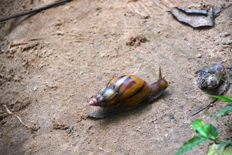 Сначала вниз с холма, затем по тропке через джунгли. Вверху – зеленый потолок из крон молодых баобабов и лиан, а под ногами – древесные корни, гигантские улитки и остатки плодов всё того же «лимонадного дерева», как прозвали баобаб африканцы.