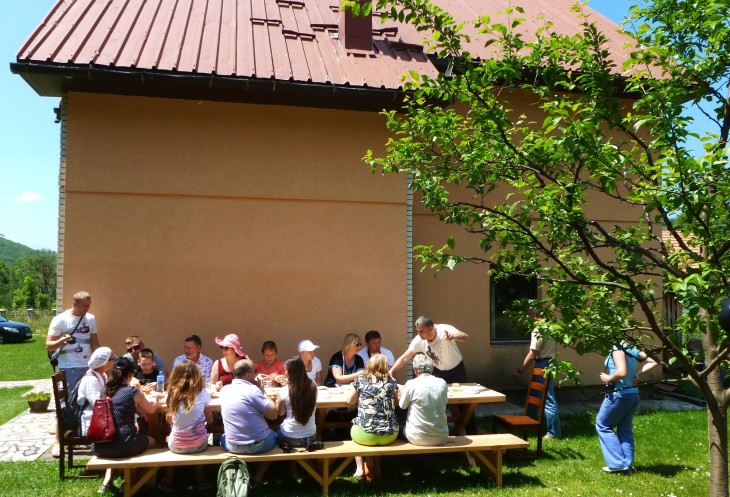 И понеслось! Пончики (какая это вкусняшка!) таяли во рту, а хозяйка наполняла тарелки все новыми партиями (и как она успевала?). Медовина оказалась очень легкой с приятной кислинкой и на жаре очень даже хорошо пилась (надо сказать, что последствий никаких не имела), а хозяин угощал и угощал…