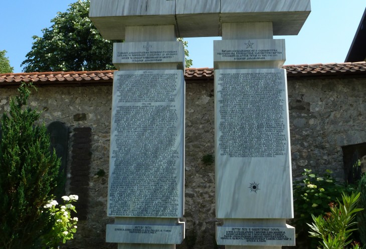 Он состоит из двух частей. На одной под изображением креста перечислены имена героев 1875-1880 и 1912-1918 годов, на другой под пятиконечной звездой с серпом и молотом – героев Второй мировой войны. Такое вот соседство…