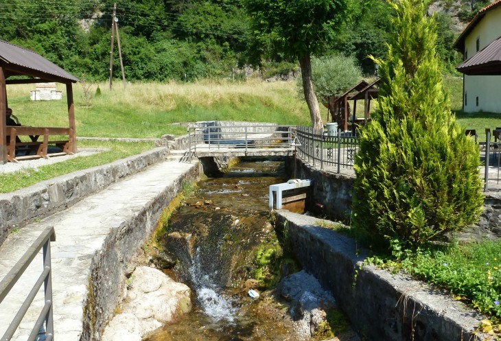 У самого входа мостик, перекинутый над небольшим ручейком, который через десяток метров вместе с другими собратьями шумно обрывается в Морачу, образуя водопад Светигора.