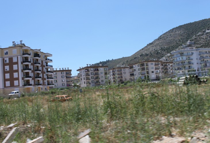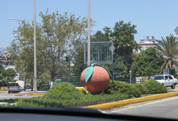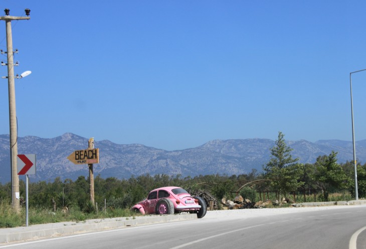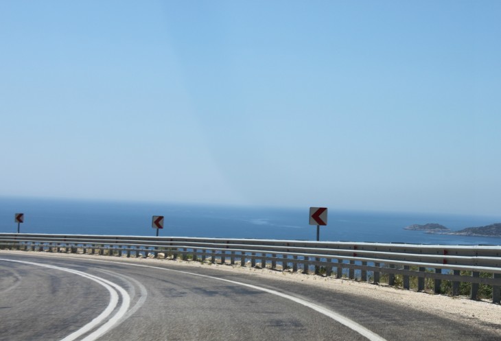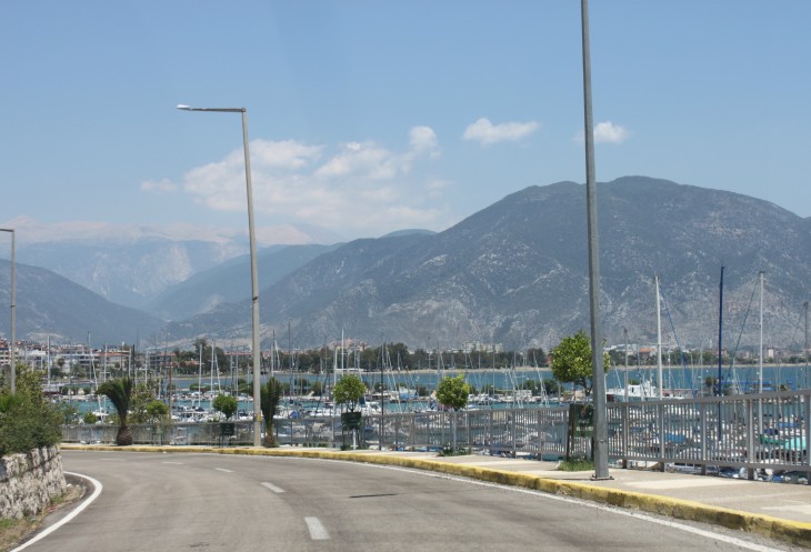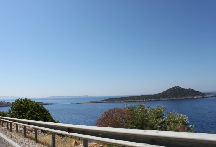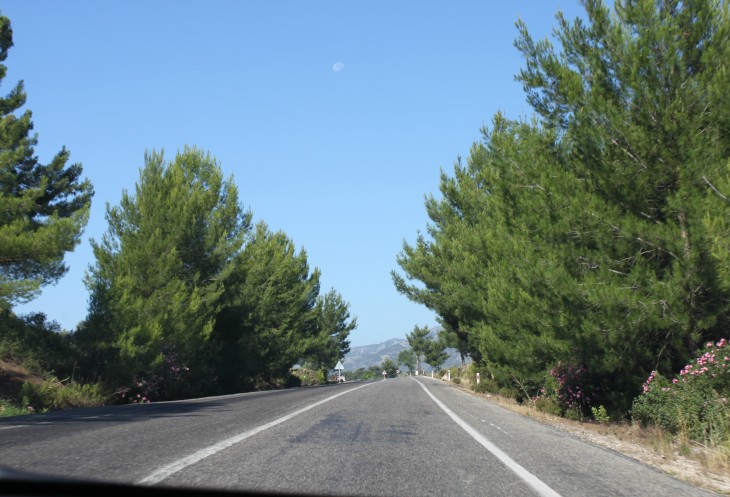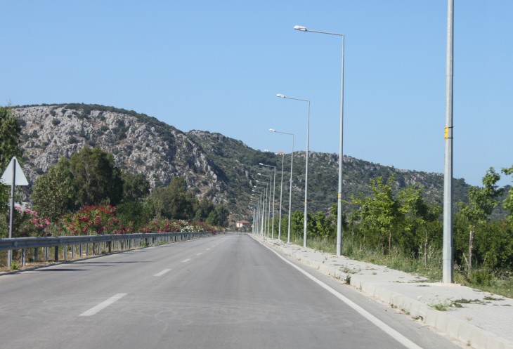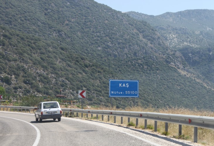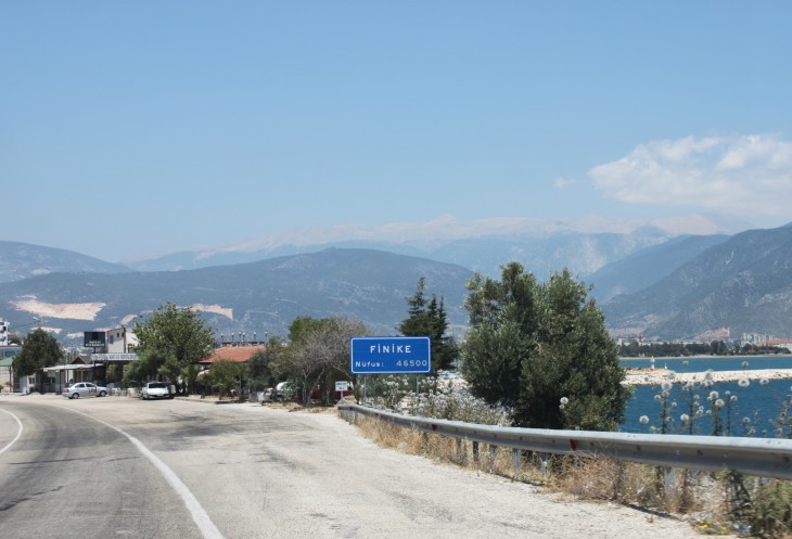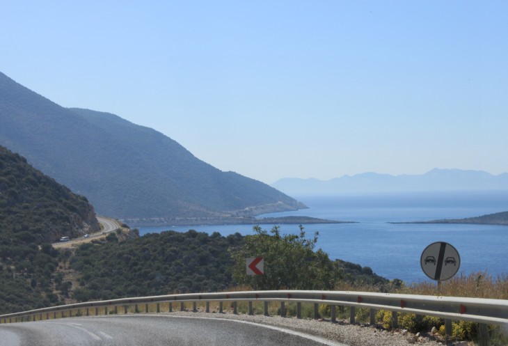 При выезде из Фетие есть указатель на Анталию и на Каш. Так вот, если вы хотите попасть в Анталию, сократив дорогу примерно на 150 км, то вам строго на указатель «Анталия». В прошлом году мы так и ехали обратной дорогой из Олюдениза. В этом случае вы уйдёте от моря вглубь страны, что не менее интересно, чем ехать по извилистой прибрежной трассе Д400. Но наш маршрут не предполагал такой путь, поэтому, повернув направо, мы отправились в путь по прибрежной части Турции, иногда немного «уходя» от моря.