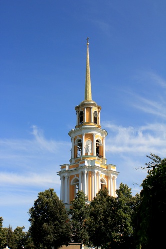 Все эти соборы собраны в центре Кремля, очень плотненько стоят друг другу, а от них уже расходятся в разные стороны другие постройки. Рядом с Успенским собором над Кремлем возвышается Соборная колокольня. Ее строили целых 50 лет! На третьем этаже колокольни расположена смотровая площадка, откуда открывается панорама Кремля и окрестностей Рязани.