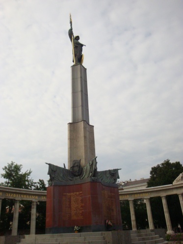 После двух музеев осталось немного времени посидеть в Бурггартене перед встречей с гидом. Правда, на большей части шла какая-то реконструкция, но свободная лавочка нашлась. Уже в который раз убедилась, что обзорные экскурсии «раньше были лучше»: или гиды были профессиональнее ввиду меньшей востребованности, или принимающие стороны не так наглели включали в обзорную больше объектов, или просто первое впечатление ярче. Нынешний гид (бывший инженер) больше сетовал на пробки, рассказывал на бытовом языке  (все-таки Франц-Иосиф ему не родственник), даже не завел в Хофбург, не знал о существовании довольно примечательного места (я спросила про общественный туалет начала 20 века в центре, оформленный в стиле сецессион), но зато он махнул рукой: «А вон там находится памятник Советскому солдату». Я даже не знала о таком, хотя про берлинский Трептов-парк все наслышаны. Так что на следующий день с утра пораньше пошла искать этот памятник. Изменилась наша жизнь, изменилась страна, изменилось отношение к прошлому, но памятник произвел неизгладимое впечатление. Вот буквально слезы навернулись: и от гордости за былые победы, и оттого, что в России далеко не все воинские памятники в таком ухоженном виде. Конечно, Вена делает это не задаром, а по международному соглашению, но все равно…