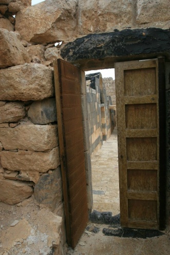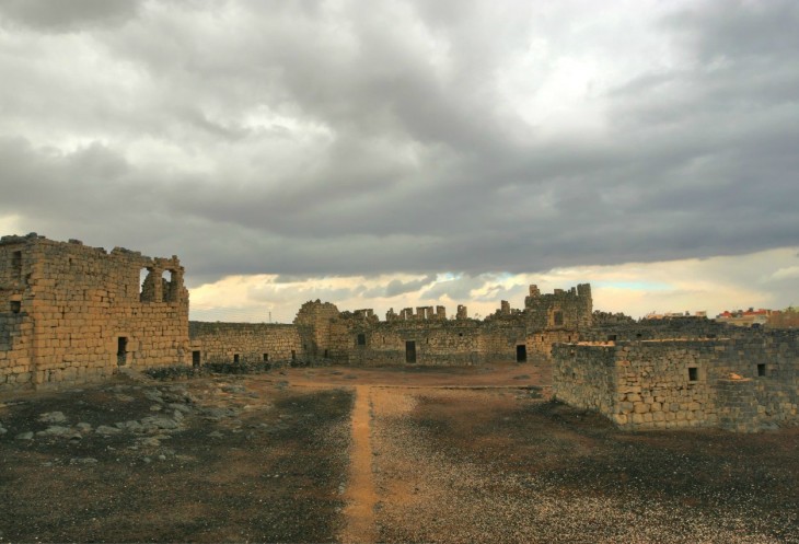 Замок Азрак построен еще в 3 м веке императором Диоклетианом. Перестроен в 13 веке. Отличительная особенность конструкции — максимальное использование камня. Обратите внимание на входные двери. Каждая створка — плита весом в тонну.