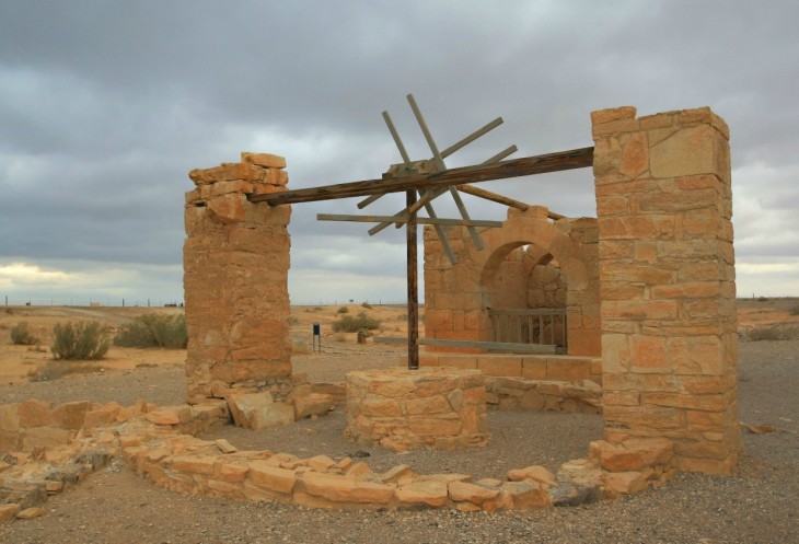 Замок Азрак (Qala’at Al-Azraq), расположенный практически в центре города, на шоссе, когда-то был самым крупным из дворцов пустыни. Сложенный из массивных базальтовых плит, трехэтажный черный монстр выдержал ни одну осаду, прежде чем землетрясение 1927 года не снесло пару верхних этажей.