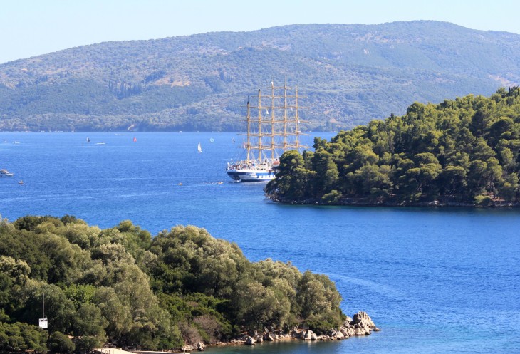 И можно было прямо с балкона наблюдать за репетициями больших и маленьких судов перед Ионической регатой: http://www.youtube.com/watch?v=5MBi2xKwhvU (видео из номера).