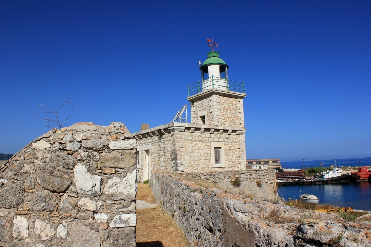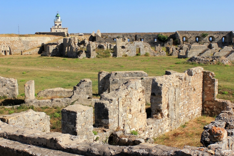 Перед входом в канал на холме возвышается полуразрушенный венецианский форт Айос Йеоргиос, который когда-то защищал подходы к Дрепанской бухте. Вход туда свободный, нижние этажи достаточно хороши сохранились, а с крыши форта открываются красивые виды на бухту, которая сейчас представляет собой небольшие обмелевшие участки моря.