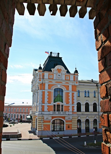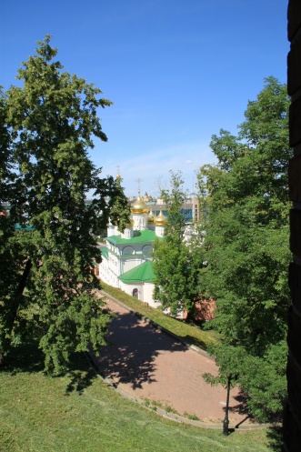 По пути мы посматриваем в проёмы направо (на территорию кремля) и в бойницы налево (на окружающуя кремль действительность, которая в некоторых местах очень даже прекрасна).