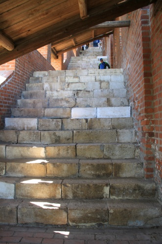 Потом мы смотрим вперёд и видим крутой спуск к Ивановской башне: