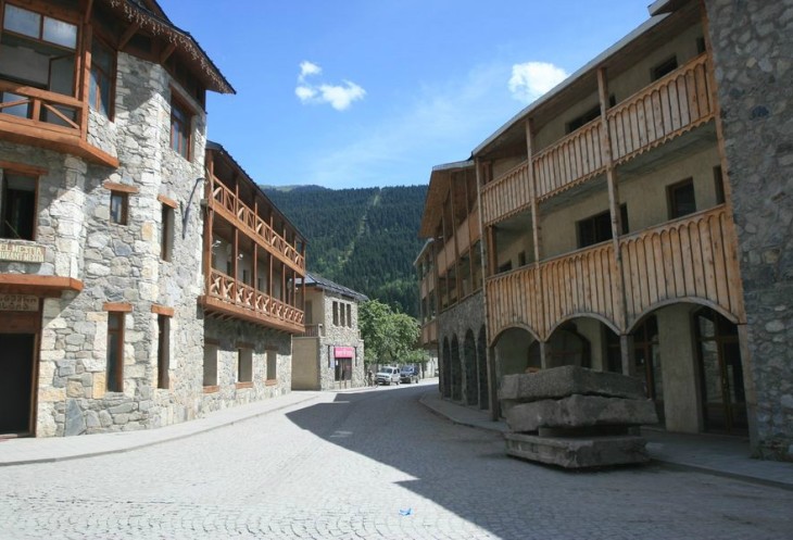 Именно улицы Местиа и его устройство очень напомнили марокканский центр горного туризма, Имлиль. А вот архитектура и оформление центра весьма уникальны - единственные, пожалуй, переулочки городка, где помимо стен из каменных глыб встречаются элементы деревянных изяществ и даже симпатичные городские скульптуры.