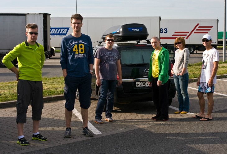 Изначально вся наша компания насчитывала 7 человек, потом выросла до 13. В итоге осталось 10. Ехали мы на двух автомобилях: дизельном VW Caravelle T5 (6 человек) и бензиновой Opel Zafira (4 человека).