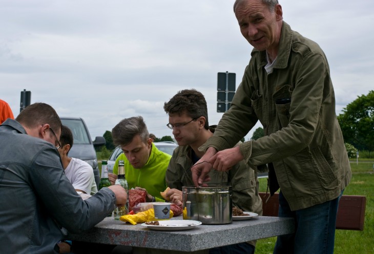Помимо того, что на немецком бане нет скоростных ограничений, он бесплатен. Впрочем, отсутствие оплаты за проезд с лихвой компенсируется увеличенным расходом на высоких скоростях, да и стоянки организованы попроще, чем в той же Франции. Мы останавливались за Магдебургом. Тушенка, гречка, чаек – качественно, сытно, недорого.