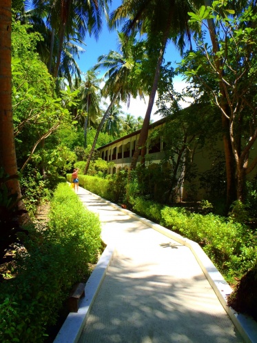 Главное – вовремя разуться! Забыть на две недели про обувь! Везде мягкий коралловый песок, а посещение присутственных мест типа reception, ресторана и бара обуви не требует.