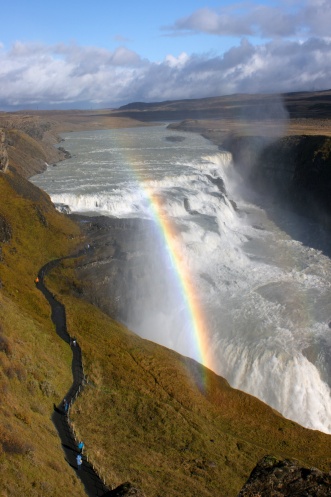 Конечно, я видел массу фотографий Гюдльфосса, но ни одна из них не предавала тех чувств полного восторга, охватившего меня! Понимаю, что и мои фотки этого не предадут, все же щелкаю и щелкаю затвором. И тут проглядывает солнце и картинка кардинально меняется – водопад наливается светом, цветом и над ним вспыхивает ярчайшая радуга!