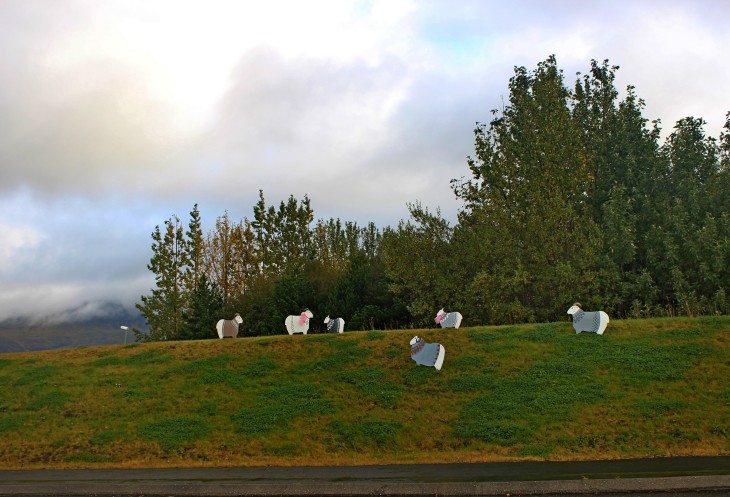 У дороги стадо овечек. Останавливаюсь, чтобы сфотографировать и с удивлением обнаруживаю, что это муляжи!