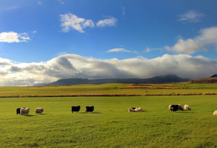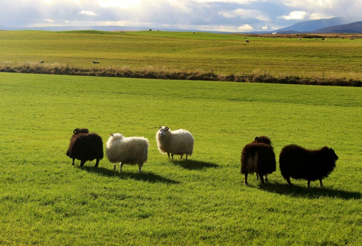 Далее дорога лежит среди бескрайних лугов, на которых мирно пасутся очень даже шерстяные пугливые овечки.