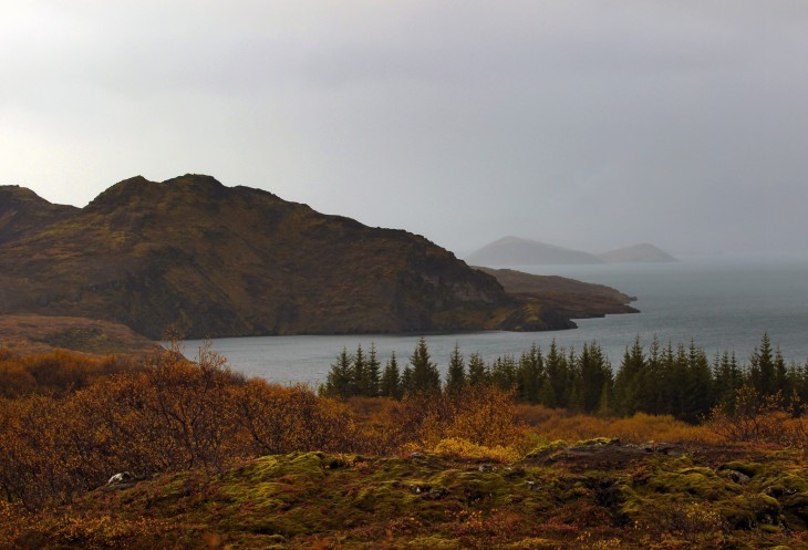 Далее еду в сторону долины гейзеров вдоль озера Тингватлаватн (Þingvallavatn), самого большого озера в Исландии. На берегу группа елочек