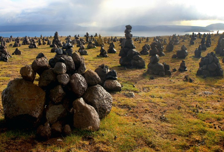 Кто их соорудил, откуда притащили камни? Неужели туристы? С трудом верится. И, главное, зачем? Ну и ладно, думаю, не стоит на этом зацикливаться, принимаю как должное, еду дальше, до обзорной площадки самого Тингве́длира.